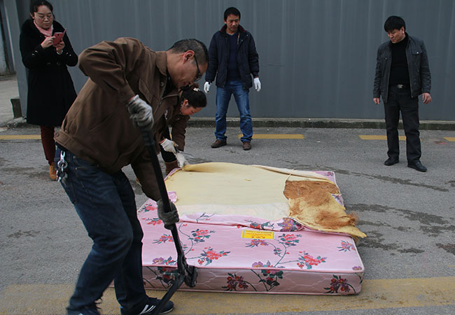 2015年1月16日,晶晶企业对2014年“以旧换新”活动中回收的各式老旧床垫产品进行了集中销毁处理。在销毁过程中许多杂牌床垫却露出了让人触目惊心的“面容”,不仅让人赶紧联想到自己家里的床垫是否也会有这么可怕呢?下面晶晶就来和大家一起分享一下销毁现场,看不过瘾的话,还可以观看文后所附的销毁现场小视频。最后希望大家看看拓展阅读知识,学习一下劣质、老旧、改造、假冒的床垫将会如何损害您及家人的健康!