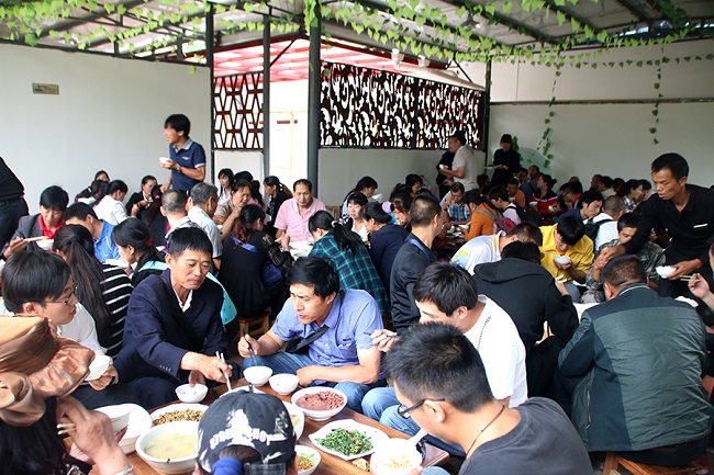 在大家的分工合作下一盆盆可口饭菜出锅热腾腾的香气扑鼻而来,大家有纷纷享受这劳动后的果实。
