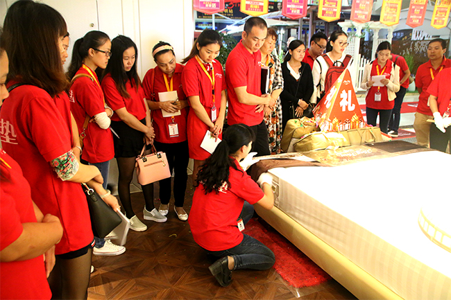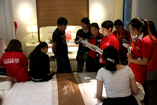 8月5日-8月6日晶晶床垫举办了首次加盟商导购员培训会,是课件加实战的全面训练。