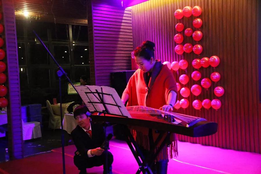一曲古筝独奏为现场带来不一样的感觉,这位表演者是来自营销中心副总张晓萍女士。在灯光的衬托下显的格外芳菲妩媚,在琴声的伴随下小晶沉醉其中。