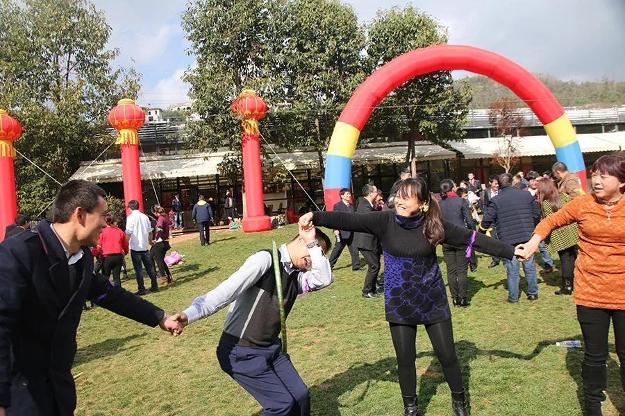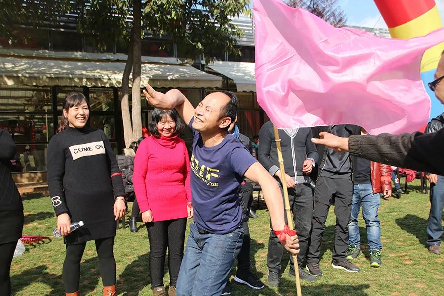 游戏酷似儿时玩的老鹰捉小鸡,现在看来别有一番风味。听到气球陆续爆炸声最终胜出队伍产生,看到各位流出欢乐的汗水冬季也并非寒冷。